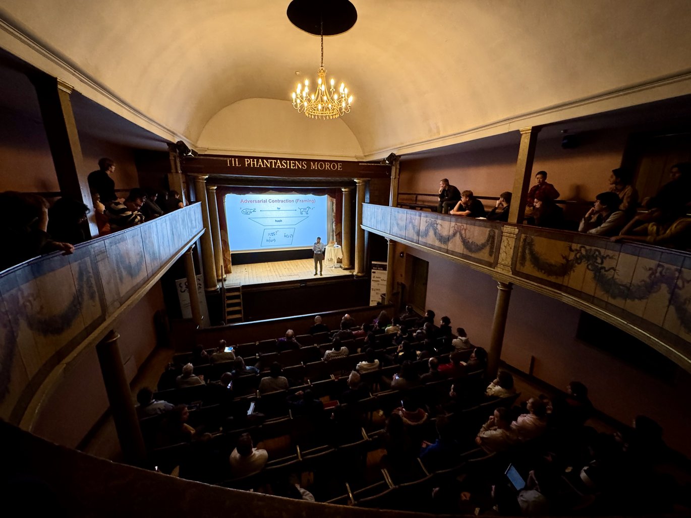 The technical programme took place in Helsingør Theater, a historic theatre inaugurated in 1817 and now located inside the open-air museum Den Gamle By. Bringing cutting-edge cryptographic research into a centuries-old setting sparked a wonderful contrast between the past and the future.